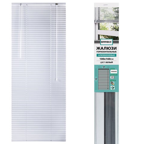 Жалюзи горизонтальные BRABIX 100х160 см, АЛЮМИНИЙ, цвет белый, 606040