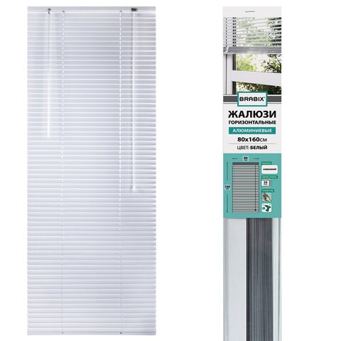Жалюзи горизонтальные BRABIX 80х160 см, АЛЮМИНИЙ, цвет белый, 606038