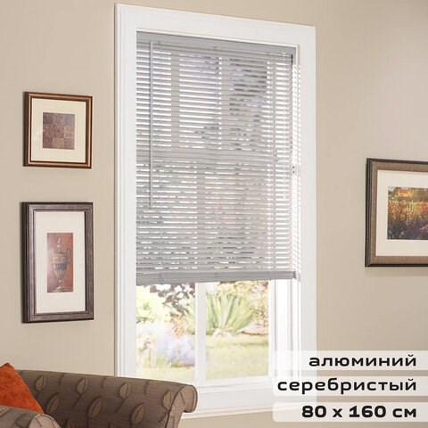 Жалюзи горизонтальные BRABIX 80х160 см, АЛЮМИНИЙ, цвет серебристый, 606039