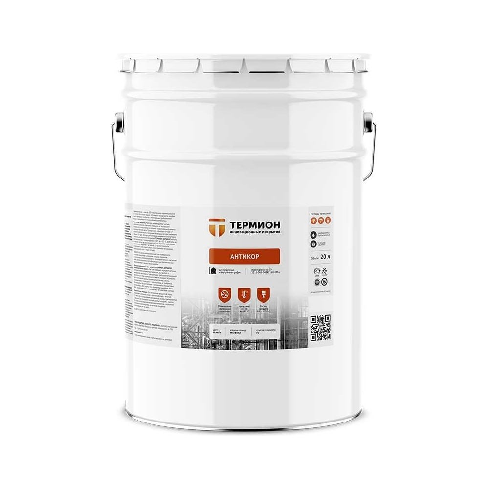 Жидкая теплоизоляция ТЕРМИОН Антикор 20 л 21168604 – жидкая термоизоляция с повышенными антикоррозийными свойствами, используется для сокращения теплопотерь и устранения конденсата на поверхностях подверженных коррозии и в качестве грунтовочного слоя перед нанесением других покрытий серии ТЕРМИОН на ржавые поверхности. Наносится при температуре от -30 °С до +45 °С. «ТЕРМИОН АНТИКОР» предназначена для термоизоляции: Трубопроводов, цистерн, котлов, инженерных конструкций, Технологических продуктопроводов, Металлических дымовых труб, газопроводов Деталей двигателей, Корпусов и механизмов судов Металлической кровли и металлических конструкций, НАНЕСЕНИЕ Подготовить покрытие к нанесению. Содержимое ведра с жидкой теплоизоляцией перемешать в ручную или дрелью с насадкой, при скорости не более 200 оборотов в минуту. Изолируемая поверхность должна быть сухой, очищенной от пыли, грязи и жировых загрязнений. Не желательно применять «ТЕРМИОН Антикор» по ранее окрашенной поверхности. Покрытие может наносится безвоздушным распылителем, валиком или кистью.