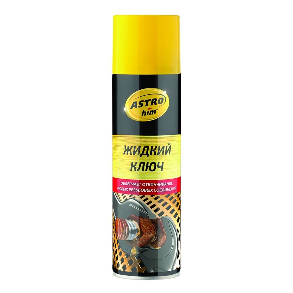 Жидкий ключ ASTROhim аэрозоль, 335 мл 40265 АC-451 быстро и эффективно растворяет ржавчину на металлических изделиях. Средство имеет высокую проникающую способность, облегчает отвинчивание заржавевших крепежных соединений.