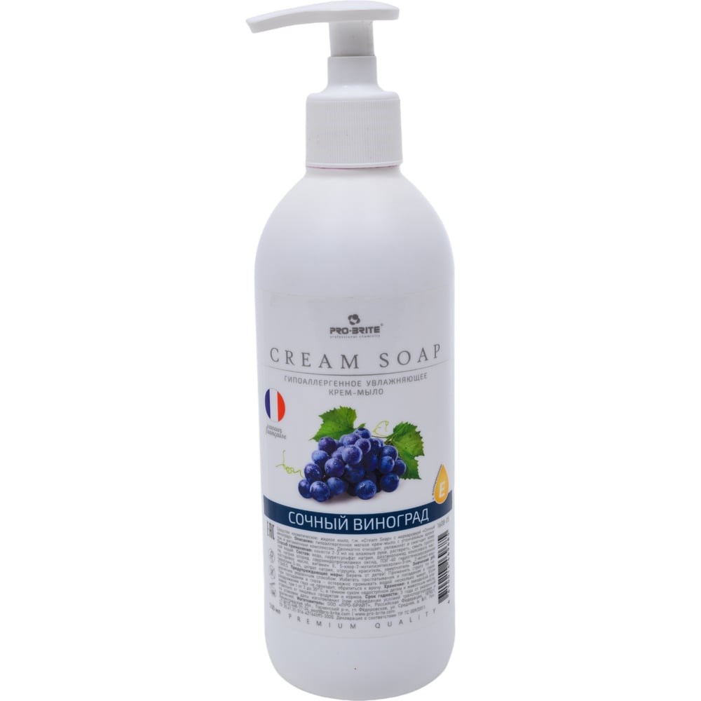Жидкое крем-мыло Pro-Brite Сочный виноград Cream Soap 1608-05 предназначено для личной гигиены.Легко смывается проточной водой, поэтому не требует сложного ухода, что экономит время.Благодаря увлажняющим компонентам не сушит кожу, поэтому безопасно в использовании.Мыло имеет гелеобразную консистенцию, за счет чего расходуется экономично, поэтому его хватит на долгое время.