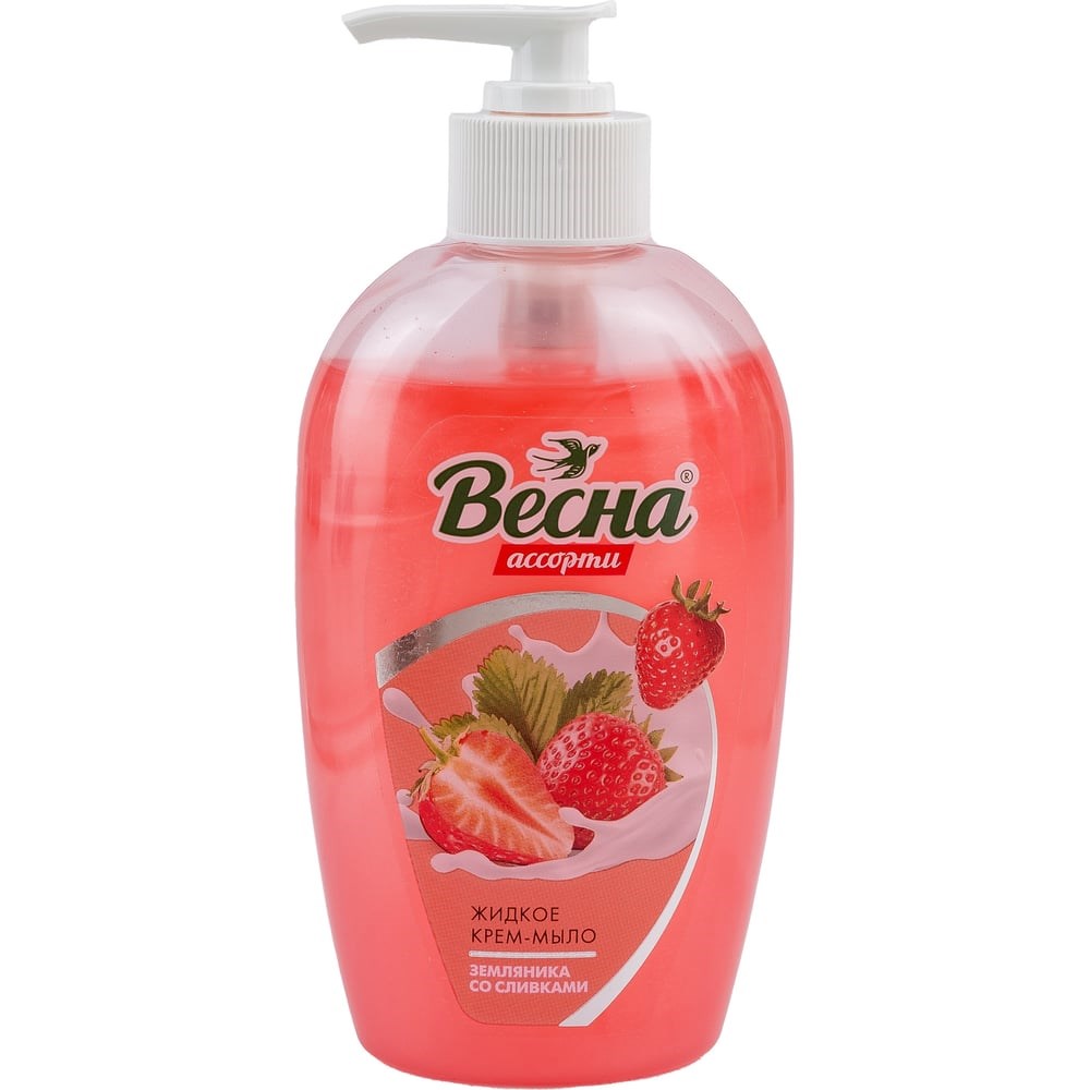 Жидкое крем-мыло ВЕСНА 280 мл земляника со сливками, дозатор, Гост, 5099 601236 предназначено для личной гигиены. Легко смывается проточной водой, поэтому не требует сложного ухода, что экономит время. Благодаря увлажняющим компонентам не сушит кожу, за счет чего безопасно в использовании. Мыло расходуется экономично, благодаря чему его хватает на долгое время.