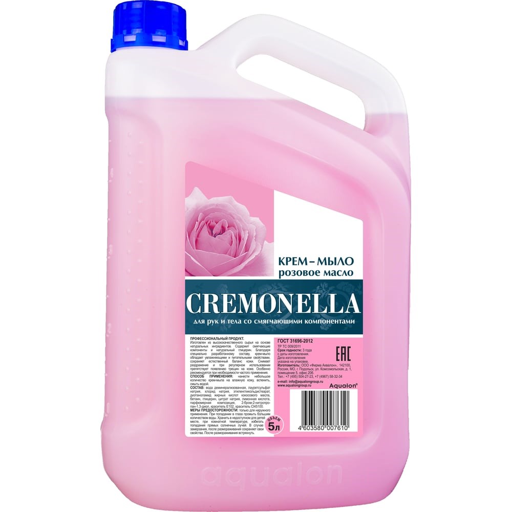 Крем-мыло Кремонелла ПРЕМИУМ жидкое, 5 л, "Розовое масло", перламутровое изготовлено из проверенного и высококачественного сырья на основе натуральных ингредиентов. Включает в состав комплекс ухаживающих компонентов, который питает и смягчает кожу рук и тела.Эффект от использования: увлажнение, питание, смягчение.Отдушка: парфюмерная роза.рН-нейтральный.Подходит для регулярного использования.Перламутровая основа.Профессиональный продукт.