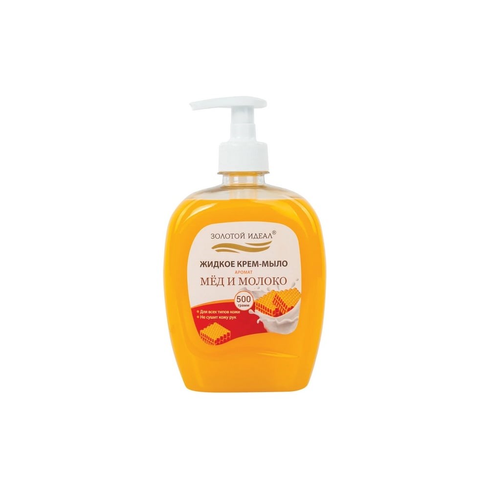 Жидкое мыло Золотой Идеал идеально подходит для использования в офисах, отелях, ресторанах и других общественных местах. Средство универсального применения отлично очищает и смягчает кожу, обеспечивает уход и увлажнение, обладает приятным ароматом. Подходит для всех типов кожи и не содержит формальдегида. Легко очищает, ухаживает и увлажняет, равномерно распределяется по коже и легко смывается водой, даря удовольствие всей семье. Благодаря входящим в состав смягчающим компонентам сохраняет защитные функции кожи, не вызывая сухости и раздражения. Способ применения: небольшое количество мыла нанести на влажную кожу, взбить пену и смыть её водой. Меры предосторожности: использовать только по назначению! Хранить в недоступном для детей месте. При попадании мыла в глаза немедленно промыть их чистой водой. Соответствует ГОСТ 31696-2012. Срок годности: 24 месяца. Состав: Aqua, Sodium Chloride, Sodium Laureth Sulfate, Cocamide DEA, Styrene/Acrylates Copolymer, Parfum, DMDM Hydantoin, Methylchloroisothiazolinone, Methylisothiazolinone, C.I. 15985. • Объем / Вес: 500 мл/г. • Мыло-крем: да. • Подходящий тип кожи: для всех типов. • Эффект от использования: смягчение, увлажнение. • Серия: SOAP. • Отдушка: молоко и мёд. • Сбалансированный уровень рН: да. • Тип дозирования: дозатор. • Вид упаковки: флакон. • Цвет: жёлтый. • Артикул производителя: 606787.