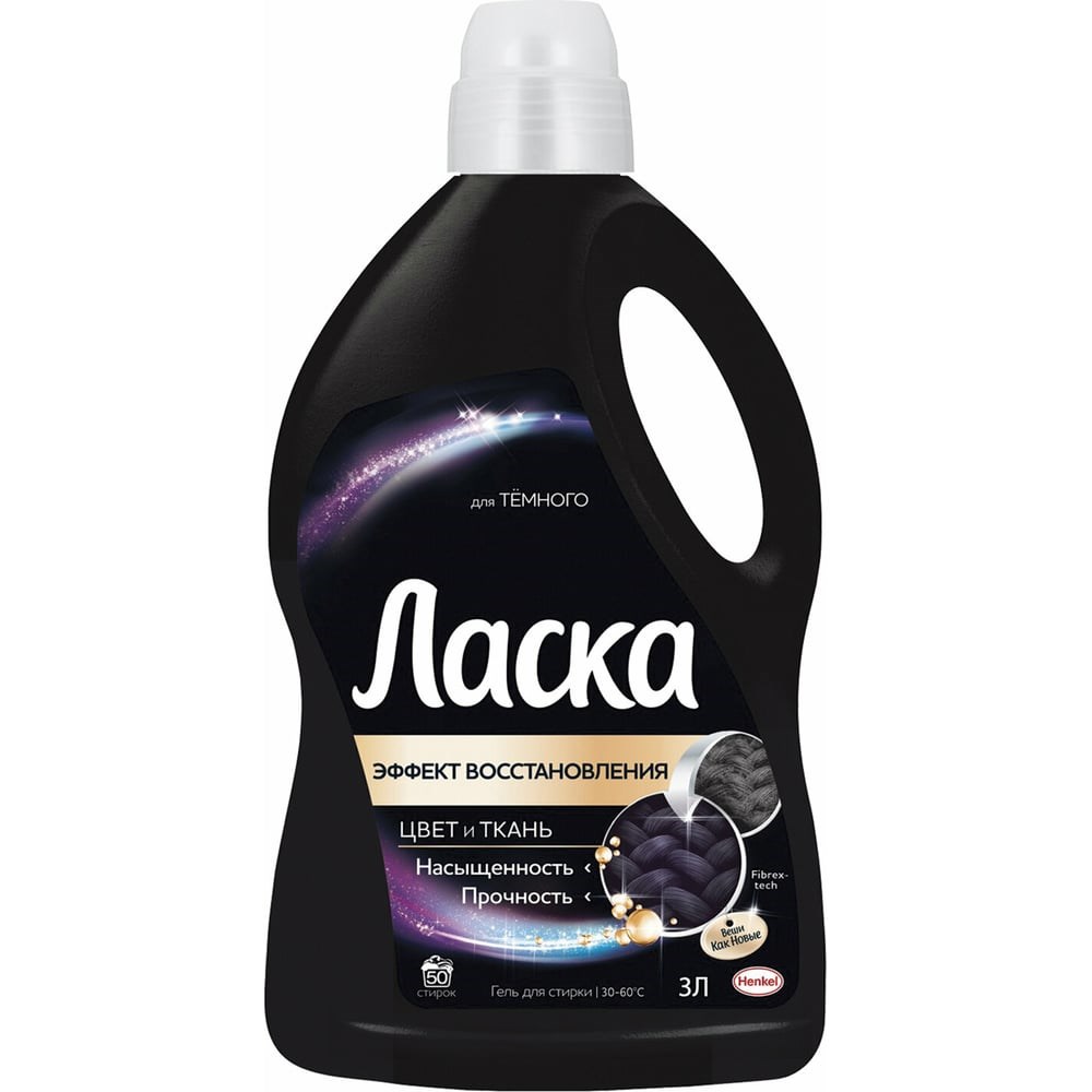 Жидкое средство для стирки ЛАСКА автомат, 3 л, Сияние черного, гель-концентрат 601890 благодаря специально разработанной системе защиты цвета сохраняет структуру ткани, восстанавливает яркость и интенсивность цвета даже после частых стирок. Предохраняет от выцветания. Для ручной и автоматической стирки. Ласка "Сияние черного", – это средство для стирки одежды черного и темных цветов. Формула Fibrex-tech с эффектом восстановления цвета ткани была специально разработана для активного ухода за одеждой и поддержания первозданной красоты вещей стирка за стиркой. Она не только бережно отстирывает загрязнения, но и отлично заботится об одежде в двух ключевых направлениях: Насыщенность цвета: Защищает яркость цвета, препятствуя переносу красителя во время стирки Разглаживает шероховатые волокна для оптимального отражения света Прочность ткани: Сохраняет прочность ткани