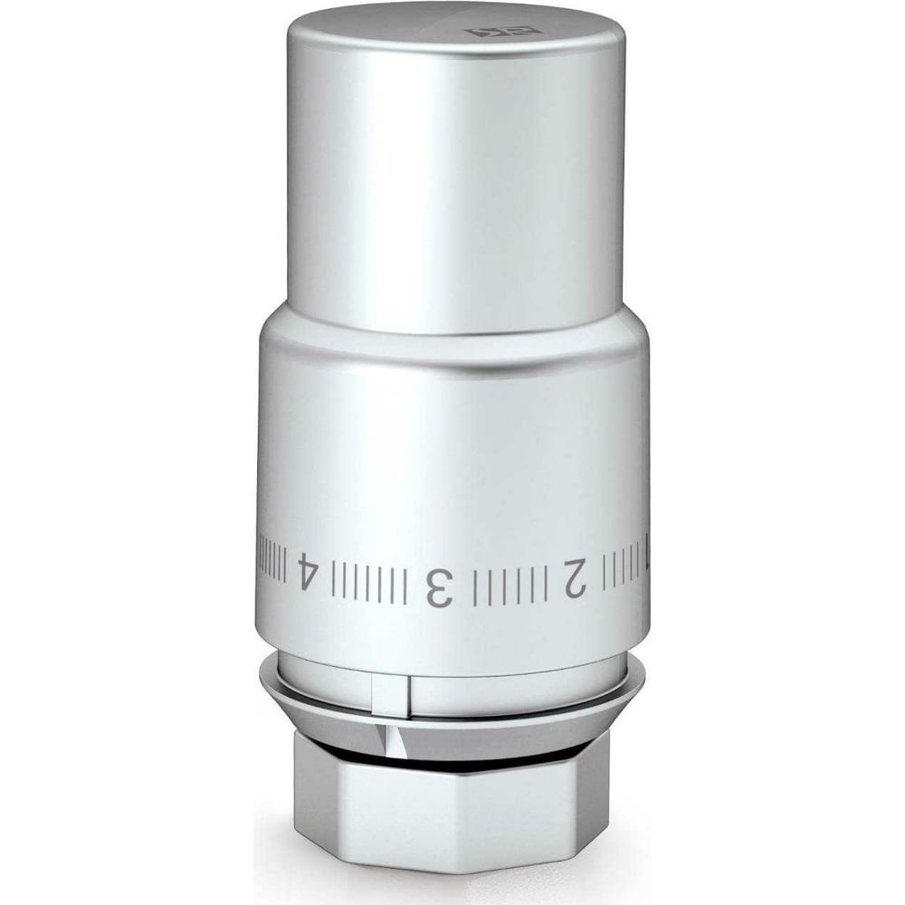 Термоголовка - элемент, предназначенный для автоматического поддержания заданной температуры в помещении. Она устанавливается на термостатический клапан (вставку) и механически настраивается пользователем на поддержание желаемой температуры воздуха в отапливаемом помещении. Воспринимая отклонение фактической температуры воздуха от заданного значения, термоголовка воздействует на клапан, перемещая его затвор.При повышении температуры жидкость расширяется, объем сильфона увеличивается, шток термоголовки и нажимной цилиндр перемещаются, а вслед за ними золотник термостатического клапана – в сторону сокращения протока теплоносителя через отопительный прибор, пока не будет установлено равновесие между давлением в сильфоне и усилием пружины. При понижении температуры происходит обратный процесс: жидкость сжимается, обьем сильфона уменьшается, шток и с ним золотник клапана перемещаются в сторону открытия до нового равновесия системы. Изменяя силу сжатия рабочей пружины можно настроить регулятор на поддержание любой желаемой температуры в пределах температурной шкалы, но не более той, на которую рассчитана мощность отопительного прибора. Термоголовка настраивается самим пользователем в процессе эксплуатации системы отопления простым поворотом ее корпуса до совмещения значения температуры со стрелкой-указателем настройки. Цифры на шкале коррелируются с поддерживаемой температурой. Диапазон регулирования температуры - 8-28°С