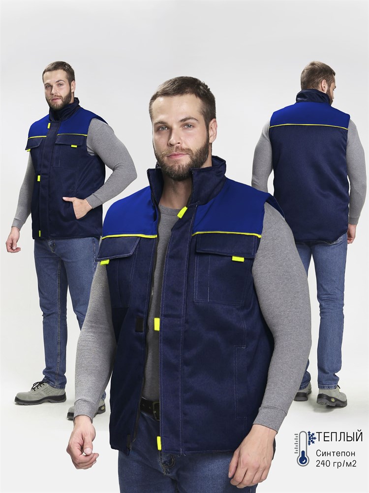 Жилет утепленный Фаворит (тк. Смесовая, 210), т.синий/васильковый