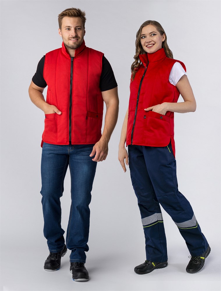 Жилет утепленный «Универсальный» предназначен для комфортной работы в холодное время года или повседневной носки на прогулках, во время путешествий и активного отдыха. Универсальный теплый жилет подходит как мужчинам, так и женщинам, прекрасно садится по фигуре и не стесняет движения благодаря боковым разрезам с округлыми углами. Удлиненная спинка полностью закрывает поясницу, препятствуя ее переохлаждению даже во время наклонов, а с помощью молнии жилет удобно надевать и снимать. Благодаря плотной ткани с влагоотталкивающей пропиткой жилетка надежно защищает от осадков и отличается износостойкостью. Утеплитель синтепон помогает сохранить тепло, а воротник-стойка закрывает шею от ветра. Безрукавка дополняется удобными боковыми карманами на кнопках, где можно размещать необходимые мелочи и расходники. Для указания ФИО присутствует этикетка с изнаночной стороны.