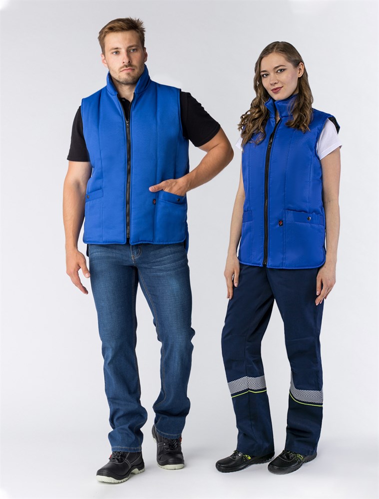 Жилет утепленный «Универсальный» предназначен для комфортной работы в холодное время года или повседневной носки на прогулках, во время путешествий и активного отдыха. Универсальный теплый жилет подходит как мужчинам, так и женщинам, прекрасно садится по фигуре и не стесняет движения благодаря боковым разрезам с округлыми углами. Удлиненная спинка полностью закрывает поясницу, препятствуя ее переохлаждению даже во время наклонов, а с помощью молнии жилет удобно надевать и снимать. Благодаря плотной ткани с влагоотталкивающей пропиткой жилетка надежно защищает от осадков и отличается износостойкостью. Утеплитель синтепон помогает сохранить тепло, а воротник-стойка закрывает шею от ветра. Безрукавка дополняется удобными боковыми карманами на кнопках, где можно размещать необходимые мелочи и расходники. Для указания ФИО присутствует этикетка с изнаночной стороны.