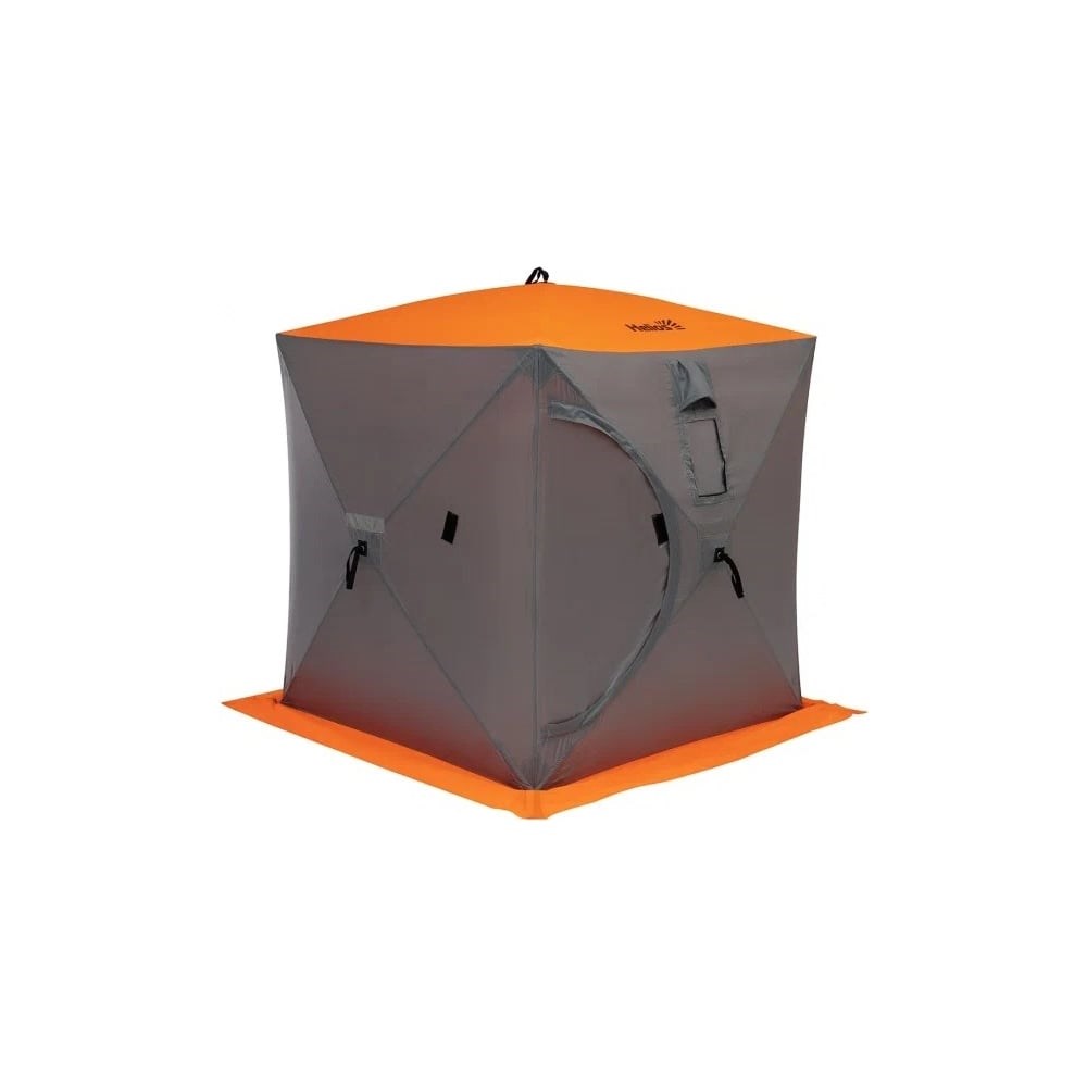 Зимняя палатка Helios Куб HS-ISC-150OLG 1.5x1.5 м, оранжевый/серый 186985 специально разработана для зимней ловли со льда. Обеспечивает защиту от ветра, дождя и низких температур. Продуманная конструкция позволяет установить ее в течение одной-двух минут даже в одиночку. Жесткий каркас дает возможность при необходимости передвинуть на более уловистые места не складывая полностью палатку. Имеет удобную форму для размещения в ней одного, двух рыбаков. Чехол для транспортировки оснащен двумя лямками и ручкой. Широкая снегозащитная юбка удерживает тепло внутри, предотвращая попадание холодного воздуха. Диаметр люверса позволяет крепить палатку ко льду бурами-ввертышами No1 и No2. На стенках расположены 2 окна. Прозрачные шторки фиксируются на липучках. Освещенность можно регулировать с помощью светозащитного клапана, открывая его полностью или частично. Вентиляционные окна с ветровыми клапанами обеспечат комфортный микроклимат внутри.