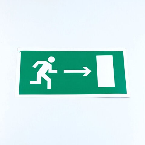 Устанавливается на стенах помещений для указания направления движения к эвакуационному выходу. Изготовлен в соответствии с ГОСТ 12.4.026-2015