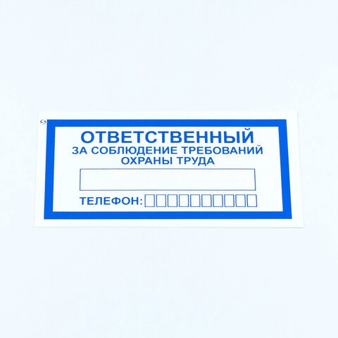 Знак информирует об ответственном за соблюдение требований правил охраны труда, предназначен для предоставления информации о фамилии, должности ответственного сотрудника и его контактном телефоне.