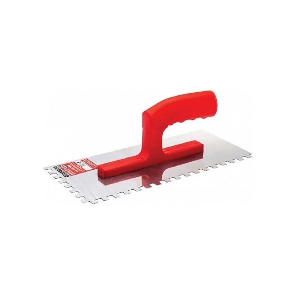 Предназначена для равномерного нанесения на различные поверхности клеевых растворов, иных отделочных материалов и их последующего разравнивания с образованием борозд. Материал полотна: нержавеющая сталь; Материал ручки: двухкомпонентный; Размер зубцов: 8 x 8 мм; Длина: 270 мм; Ширина: 130 мм.