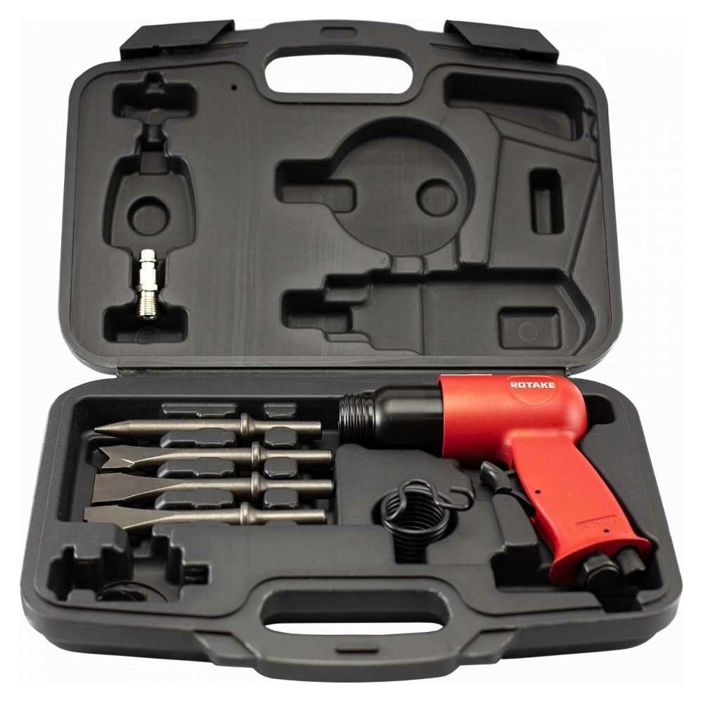 Пневмозубило Rotake 150мм, с комплектом насадок RT-3501RK предназначено для ударно-режущих работ, связанных с кузовным ремонтом, обработкой деталей, штроблением, удалением болтов и заклепок. Корпус выполнен из легкого и прочного сплава, что облегчает работу в процессе эксплуатации. Длина 150 мм, частота ударов молотка составляет 4500 уд/мин. Для длительного срока службы инструмента всегда используйте чистый и сухой сжатый воздух с добавлением специального масла.