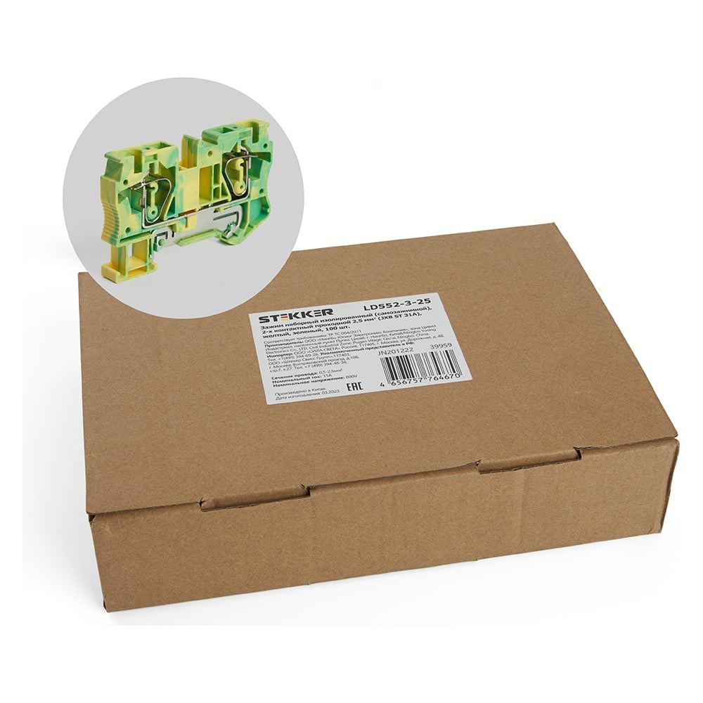 Самозажимной 2-проводной проходной зажим STEKKER ЗНИ - 2,5, JXB ST 2,5, желтый, зеленый LD552-3-25, 100шт, 39959