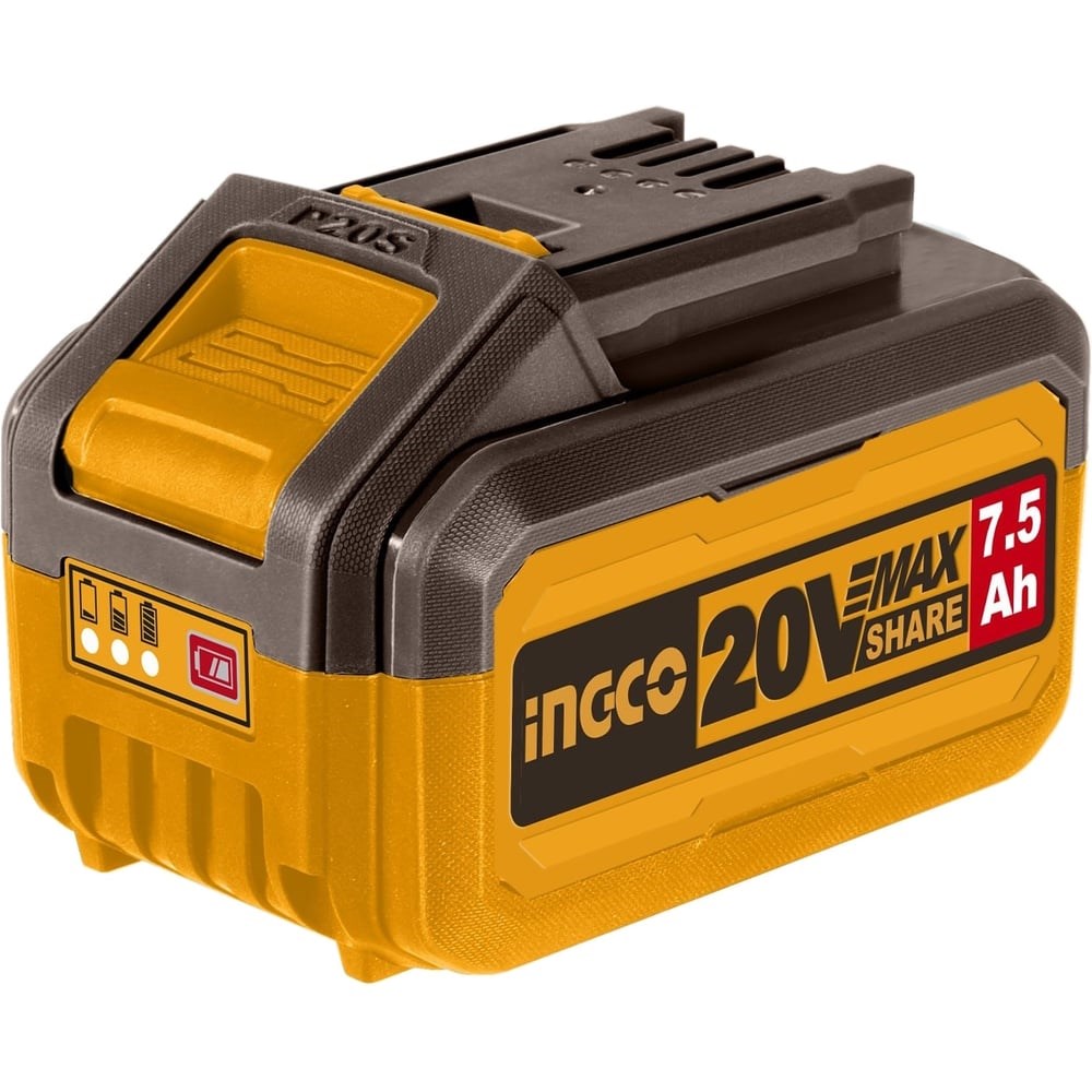 Аккумуляторная батарея 20В/7.5Ач. INGCO FBLI2075 INDUSTRIAL емкостью 7.5Ач подходит для всех аккумуляторных инструментов семейства P20S.У литий-ионных аккумуляторов отсутствует эффект памяти, благодаря чему возможна зарядка в любое время независимо от разряда батареи.Имеет возможность долгого хранения без потери заряда.Светодиодный индикатор заряда батареи.