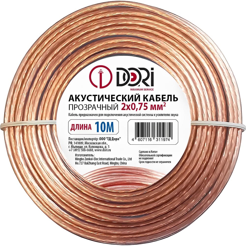 Кабель акустический DORI 2х0,75, прозрачный, 10 мПрочный акустический кабель DORI 2х0,75 с прозрачной оболочкой, идеальное решение для соединения аудиотехники с качественным звучанием.