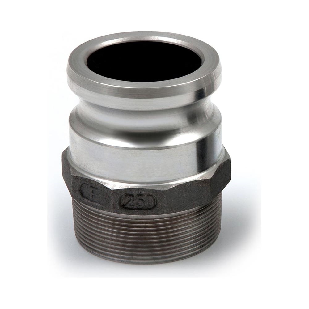 F: тип камлока - соединительный штуцер с наружней резьбой и ответной частью "папа" 250: условное обозначение диаметра камлока 2 1/2": внутренний диаметр трубы (условный проход трубы), обозначение размера резьбы в дюймах. Соответствует 63 мм. Вид резьбы: дюймовая трубная коническая R (BSPT) Материал корпуса: горячештампованный лёгкий алюминиевый сплав Номинальное рабочее давление: 11 бар Рабочая температура камлока: от -65°C до +93°C