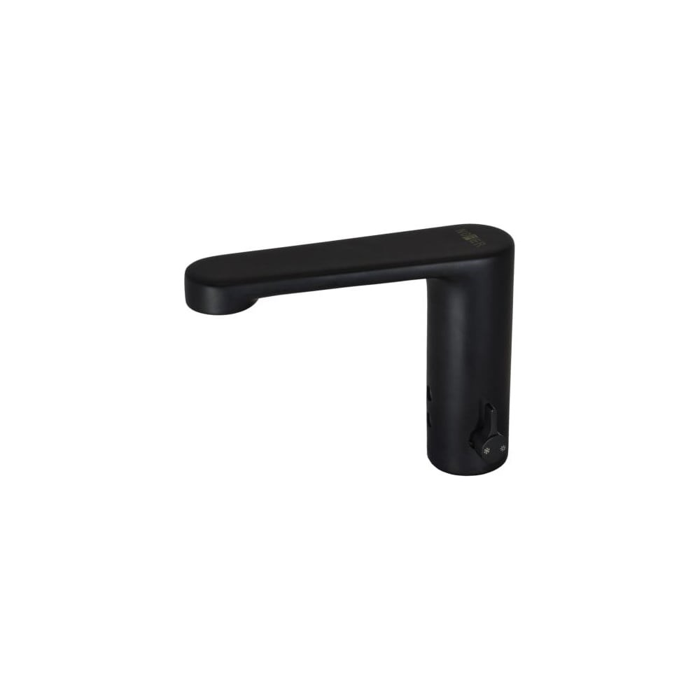 Автоматический смеситель с антивандальным аэратором черный 07260.M.N. Установка на столешницу с автоматической системой активации через встроенный в нее инфракрасный датчик. Кран работает от 4 батареек АА, которые обеспечивают напряжение 6 В, или может быть подключен к электрической сети с помощью модуля (в комплекте) (220 В, 50/60 Гц).