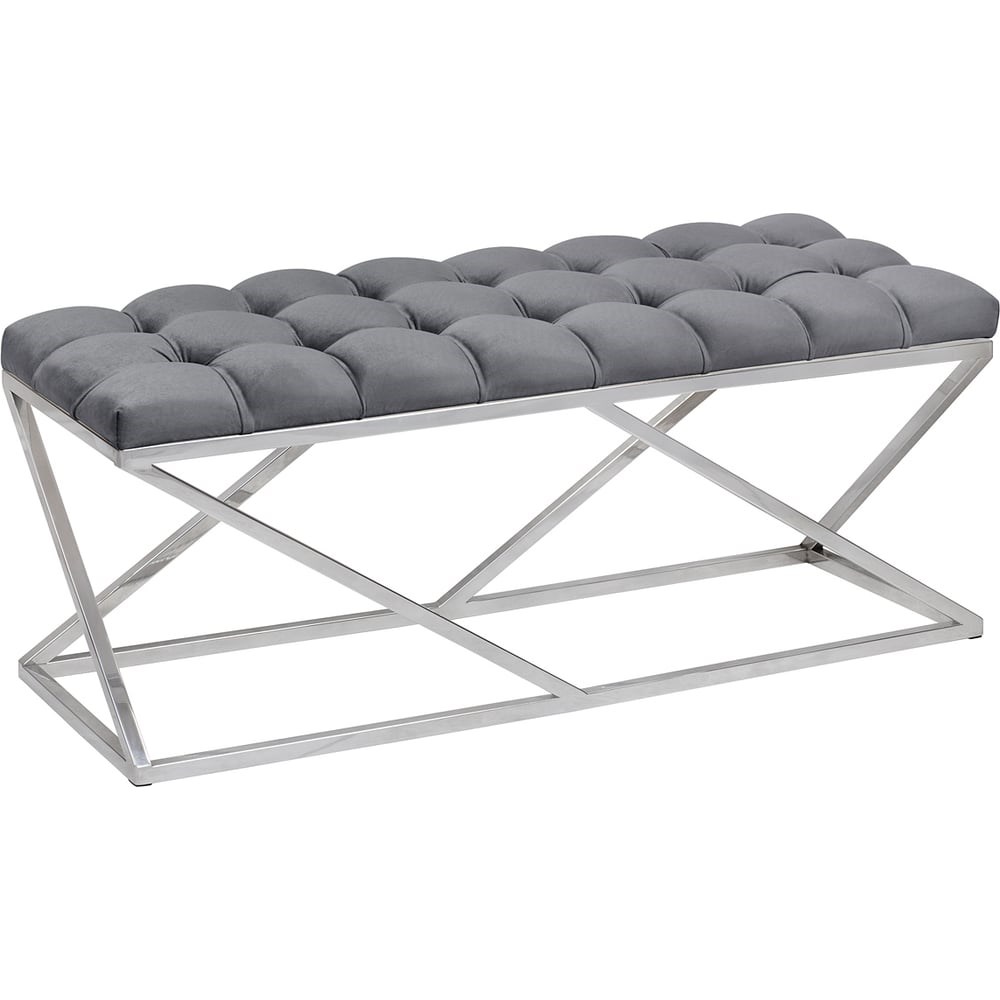 Банкетка ZUMA с каркасом из нержавеющей стали и мягким сиденьем в каретной стяжке привлекает внимание элегантным видом и комфортной посадкой. Стильная банкетка-скамья подойдет для прихожей, спальни, гостиной, гардеробной и кабинета. Банкетка в прихожую дополнит интерьер квартиры, офиса, салона и загородного дома. Мебель из нержавеющей стали отличается долгим сроком службы, подходит для использования в общественных пространствах. Новая коллекция банкеток ZUMA дает широкий простор для дизайнерских решений в современных интерьерах: минимализм, лофт, арт-деко, хай-тек. Каркас банкетки выполнен из высококачественной нержавеющей профильной трубы 20х20 мм. Металлическое основание отличается повышенной прочностью, устойчивостью к коррозии. На ножках банкетки предусмотрены войлочные накладки для защиты напольного покрытия. На скамейке могут комфортно разместиться 2 человека, максимальная нагрузка на банкетку 160 кг. Эффектное сочетание бархатистой обивки и металлического основания банкетки понравится всем ценителям стильной и надежной мебели GreenWeen. Качественные материалы позволят надолго сохранить первоначальный внешний вид банкетки. Доставляем банкетку в собранном виде в надежной упаковке.