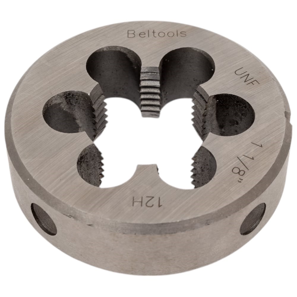 Плашка Beltools дюймовая 1 1/8" 12H UNF 60 гр. dнар.резьбы=28,575 D=65 мм ri.126.96 необходима для нарезания наружной резьбы на шпильках. Имеет несколько зон для отвода стружки.Конструктивно подходит для плашкодержателей с классическими зажимами. Квалитет указывает на высокую степень чистоты реза сталей.