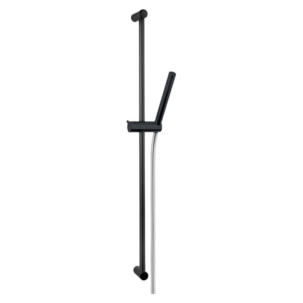 Душевой комплект Paini Ancona оснащение; штанга из нержавеющей стали; латунная лейка; пластиковый шланг 150 см с системой антискручивания. Гибкие силиконовые форсунки препятствуют образованию известкового налета. Комплект устойчив к ржавчине и известковому налету благодаря защитной пленке, изготовленной из прочного карбона черного цвета.