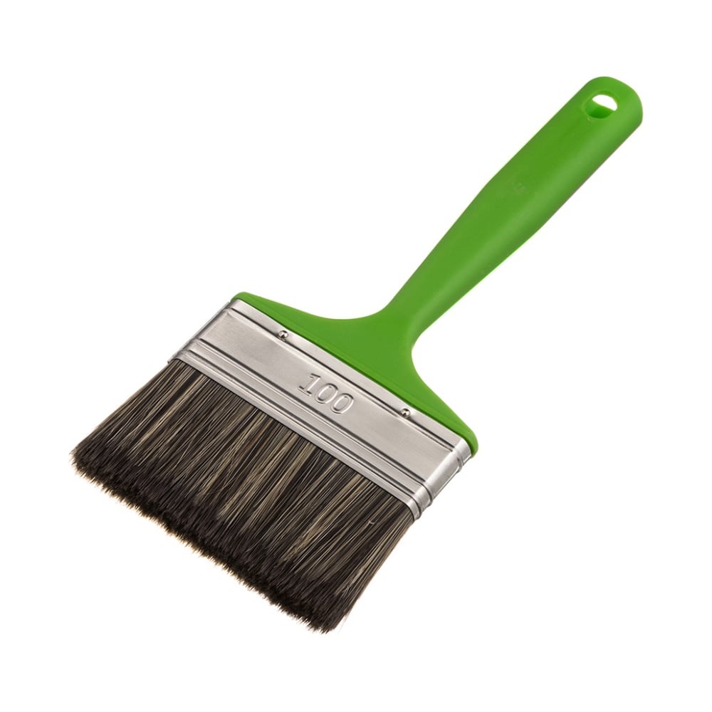 Флейцевая кисть для работ по дереву смешанная щетина С1 100х14мм Мелодия цвета 67100 выполнена из смеси синтетической и натуральной щетины. Рекомендуется для нанесения: пропиток, антисептиков, лазурей, грунтовок. Модель оснащена качественной рукояткой со специальным профилем для надежного хвата. Плотность и фактура щетины обеспечивают равномерное нанесение краски и достаточный забор материала.