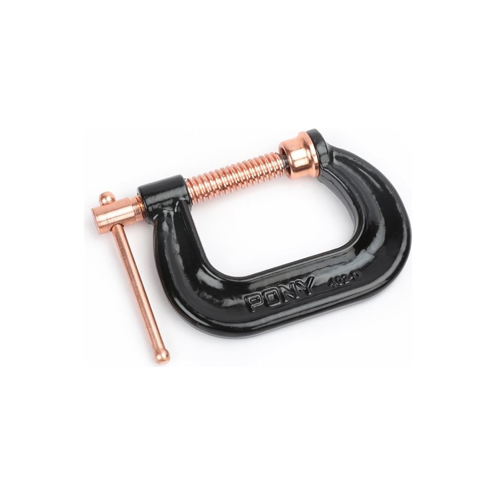 Самые тяжелые работы требуют более надежного зажима Самые прочные С-образные струбцины изготавливаются из термообработанных кованых рам из углеродистой стали, винтов с медным покрытием, рукояток и шарниров для тяжелых условий эксплуатации в промышленности Большая площадка для надежного зажима, а черное порошковое покрытие обеспечивает гладкую поверхность