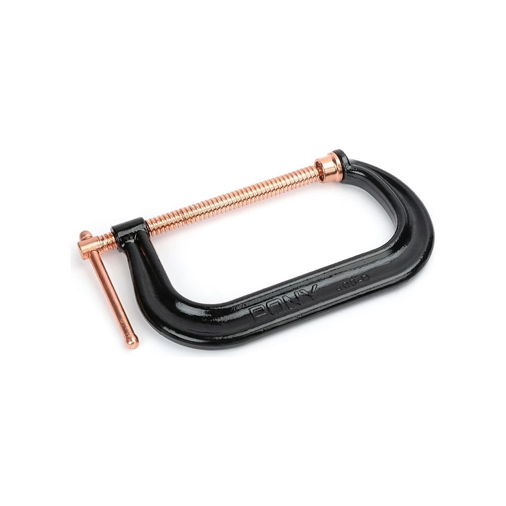 Самые тяжелые работы требуют более надежного зажима Самые прочные С-образные струбцины изготавливаются из термообработанных кованых рам из углеродистой стали, винтов с медным покрытием, рукояток и шарниров для тяжелых условий эксплуатации в промышленности Большая площадка для надежного зажима, а черное порошковое покрытие обеспечивает гладкую поверхность
