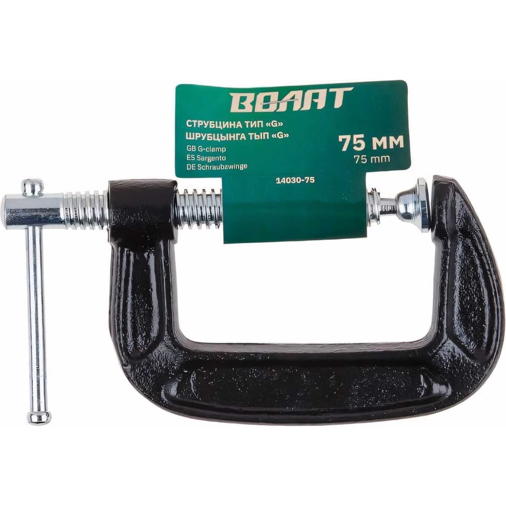 Струбцина ВОЛАТ G-образная 14030-75 позволяет соединить между собой несколько деталей или закрепить их у верстака. Простая винтовая конструкция обеспечивает эффективную работу. Инструмент оснащен прочным основанием - не подвержено деформации. Можно затягивать с большим усилием.