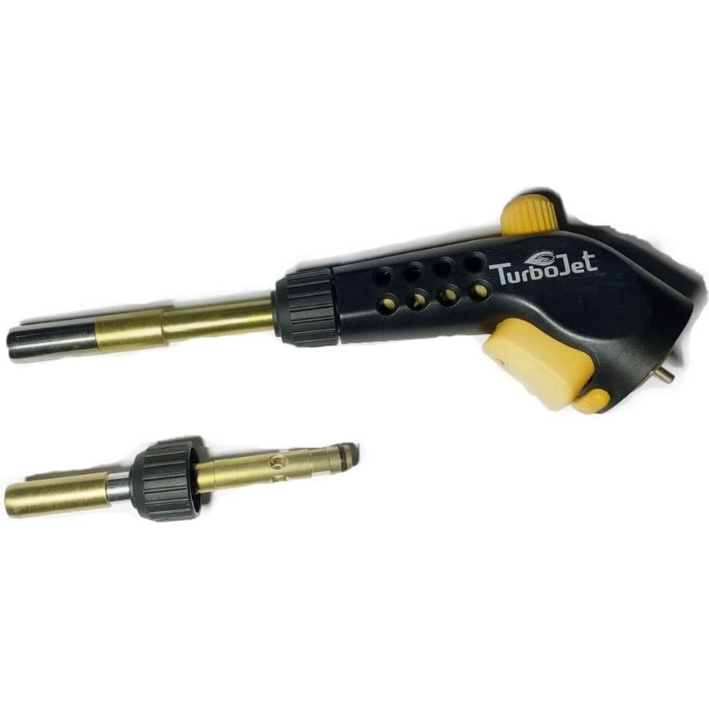 TJ2500M - это лучшее сочетание цены и качества.Трубка горелки TJ2500M выполнена из нержавеющей стали и имеет съемное латунное сопло.В комплект с горелкой входит дополнительное сопло, что безусловно увеличит срок ее службы. Горелка пользуется популярностью у автомехаников. Она отлично прогревает заржавевшие болты и гайки, при помощи специального припоя и флюса поможет запаять трубки автомобильных кондиционеров. Также эта горелка подойдёт для использования в бытовых условиях, для правки кровли, разжигания мангалов и каминов.Горелка оснащена пьезоподжигом и регулировкой интенсивности пламени. Имеет достаточно высокую тепловую мощность 3,3кВт.Подключается горелка TurboJet TJ2500-M к баллонам МАПП-газа и пропана с американской резьбой (тип резьбы CGA600).