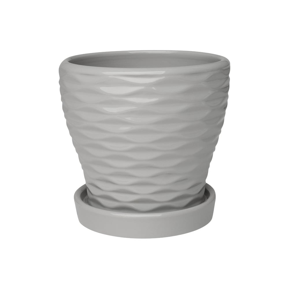 Керамический горшок от бренда "Вещицы" с литым поддоном в сером цвете сочетает в себе прочность, удобство и эстетику. Подойдет так же для растений, требующих особого внимания. Благодаря литому поддону с дренажным отверстием создается дополнительный запас воды, при этом не происходит загнивание корней. Прекрасное решение для сбора лишней воды. Волнообразный рельеф – это универсальный и стильный элемент декора.