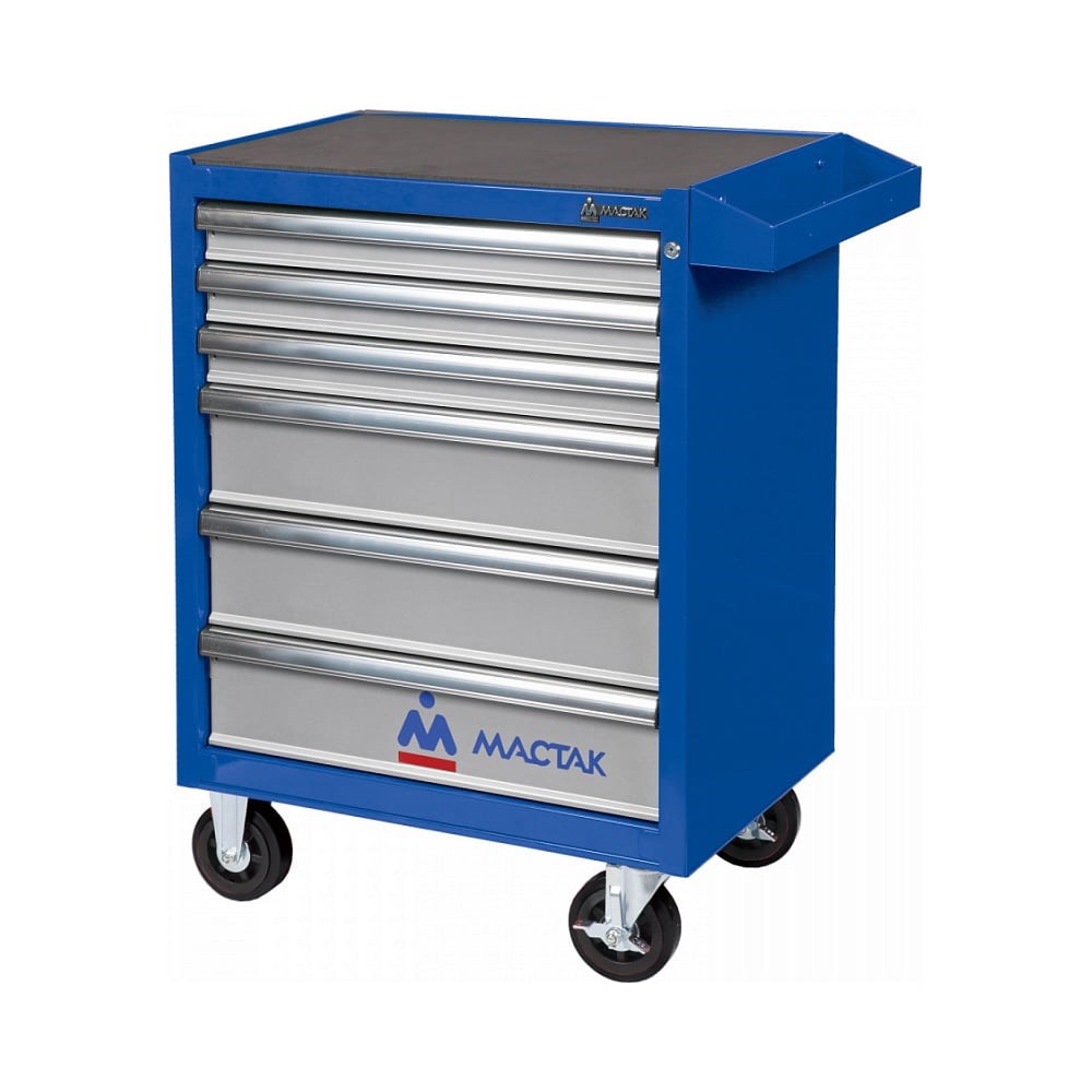 Инструментальная тележка МАСТАК серии ОПТИМА, 6 полок, синяя 521-06581MB выполнена из листового металла на прочном и жестком каркасе. Конструкция выдерживает значительную нагрузку. Ее не перекашивает при движении по неровным поверхностям. Удобная рукоять упрощает перемещение. Она монтируется по ширине тележки и позволяет легко маневрировать. Поворотные колеса дополнительно оснащены стопором, который облегчает стабилизацию тележки. Каждый ящик оборудован удобной рукояткой для извлечения. Различная глубина ящиков значительно облегчает хранение мелочей или крупногабаритных инструментов, а также наборов. Верная систематизация уменьшает время поиска подходящего инструмента или оснастки.