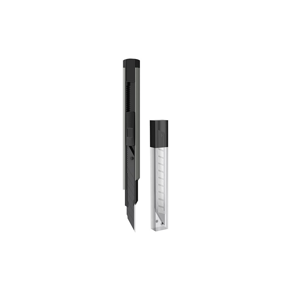 Канцелярский нож с автоматической системой фиксации лезвия auto-lock используется для разрезания картона, бумаги, обоев и так далее. Корпус изделия полностью выполнен из металла. Модель комплектуется износостойким стальным лезвием с углом 30 градусов черного цвета, для более легкого скольжения.