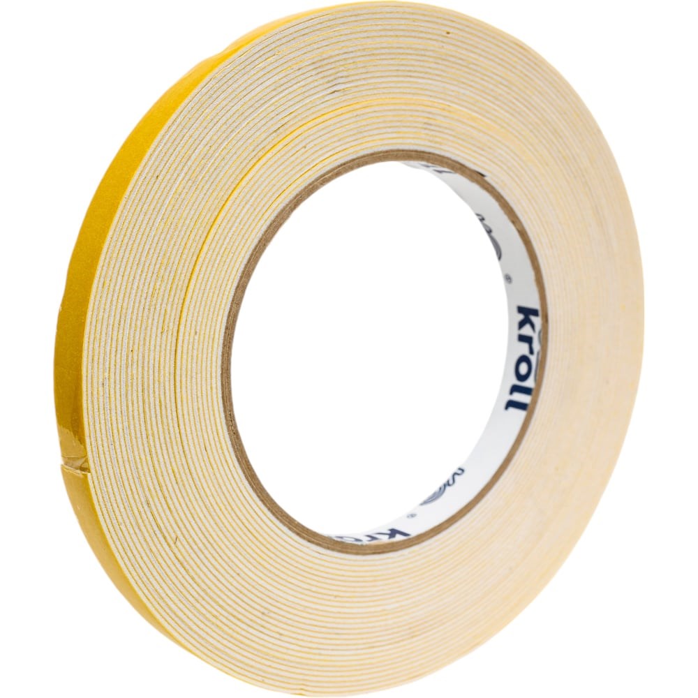 Клейкая лента на вспененнной основе KROLL 12 мм х 10 м 4607190400953 с основой из мелкоячеистого вспененного полиэтилена с нанесенным с двух сторон клеевым слоем hot melt. Благодаря тому, что основа ленты имеет значительную толщину и специализированный клеевой состав, отличающийся высокой клейкостью, лента может применяться на шероховатых и негладких поверхностях. Широко применяется как альтернатива гвоздям, шурупам и клею для крепления и монтажа различных элементов при строительных, ремонтных работах, в быту и на производстве. Лента позволяет быстро и легко соединять предметы и конструкции из металла, пластика, стекла, керамики, дерева, картона и т.д. (например, для крепления пластиковых бордюров и плинтусов, табличек, крючков, декоративных элементов).