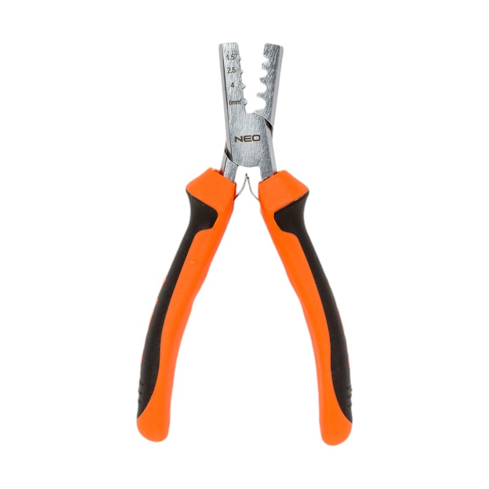 Клещи для обжима наконечников NEO Tools 1.5-6 мм2 140 мм 01-533 предназначены для наконечников в диапазоне 1.5-6 мм². Губки из закаленной углеродистой стали отличаются высокой прочностью и обеспечивают высокую эффективность. Двухкомпонентные рукоятки из мягкого, антискользящего материала ПВХ повышают комфорт работы. Возвратные пластины облегчают работу.