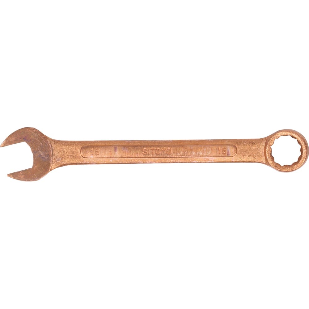 Комбинированный гаечный ключ предназначен для работ с резьбовыми соединениями в процессе ремонтных и монтажных работ. Инструмент выполнен из высококачественной стали, благодаря чему отличается прочностью и долговечностью. Омедненное покрытие обладает повышенной устойчивостью к высокотемпературному воздействию случайной искры. Ключ может применяться на предприятиях с наличием потенциально опасных сред, а также в быту.
