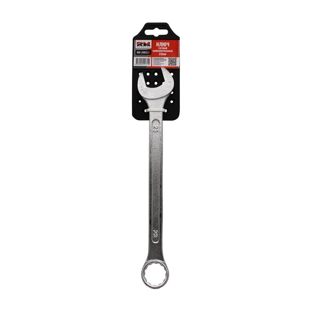 Гаечный ключ REDMARK комбинированный 23х23 мм RM200523 представляет собой инструмент для монтажа и демонтажа крепежных элементов. Конструкция ключа включает в себя прочное тело с ребрами жесткости, а также увеличеные размеры основания.Он выполнен из прочной стали - не деформируется при вращении. Также не подвержен коррозии.
