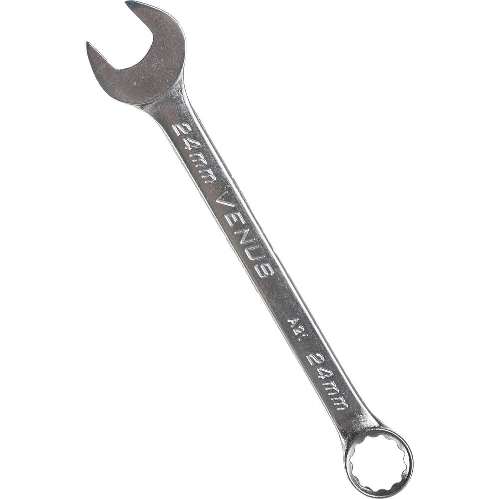 Гаечный комбинированный ключ Venus 24x24 7811-0231 изготовлен методом холодной штамповки из прочной хромванадиевой стали. Последующее покрытие стали антикоррозийным составом обеспечивает комфортную работу даже в условиях повышенной влажности.Ключ имеет наклон головок таким образом, чтобы в ограниченном пространстве можно было работать максимально эффективно. Прочное основание и тело инструмента легко выдерживают высокую нагрузку.