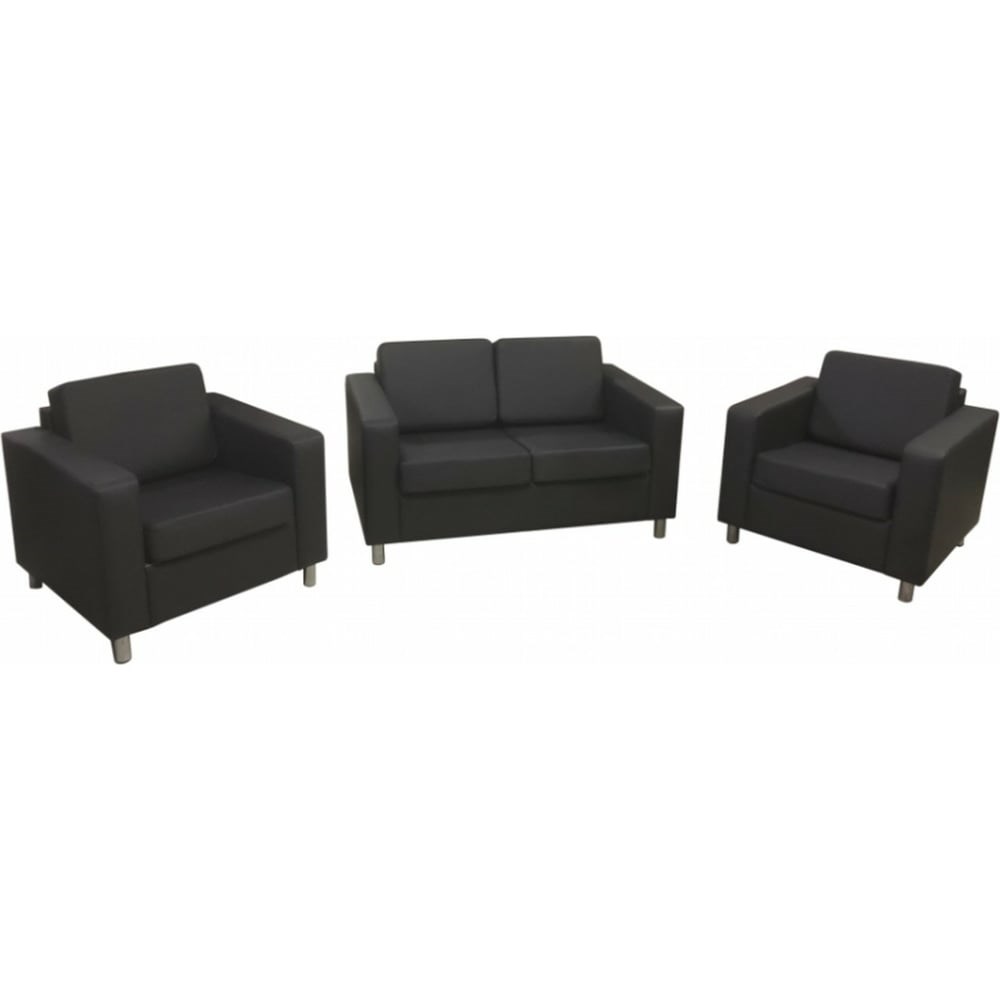 Комплект Мягкий офис Артур черный КОМАРТ401ЧН предназначен для офиса или дома. За счет прочного каркаса прослужит долгое время. Благодаря мягким сидениям удобен в использовании. Выполнен в современном дизайне, поэтому впишется в любой интерьер. Дополнительные технические характеристики: Тип: комплект. Механизм: нет. Ящик для белья: нет. Габариты дивана (в/ш/г): 84x149x84 см. Габариты кресла (в/ш/г): 84x86x84 см. Размер спального места (д/ш): 187x89x225 см. Наполнитель: высокой плотности ППУ. Ножки: хромированный металл, 10 см..