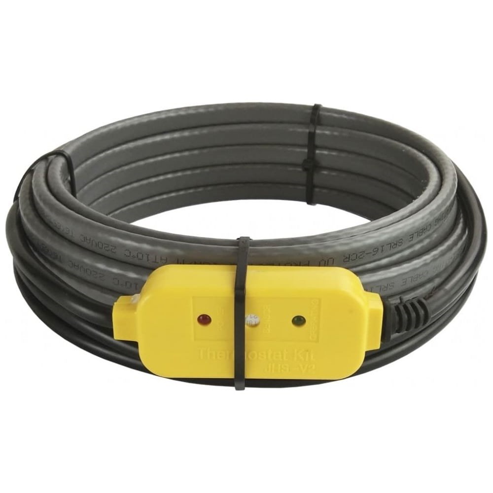 Комплект для обогрева трубопровода - это простое и удобное решение для надежной защиты труб от замерзания. В комплекте саморегулирующийся греющий корейский кабель EASTEC SRL16-2CR экранированный мощностью 16 Вт/м длиной 5 м соединен в электрическим проводом длиной 1,8 м, снабжен корейским терморегулятором Thermostat Kit, c вилкой с заземлением. Термостат управляет обогревом трубы в автоматическом режиме, без участия пользователя: при +5 градусах происходит включение термостата и нагрев кабеля, при достижении +15 градусов отключение, постепенное снижение температуры и снова включение нагрева при +5 градусах. Термодатчик встроен в термостат, комплект устанавливается на трубу под изоляцию, электрический провод можно удлинить до нужного метража. Термостат включает кабель при необходимости повышения температуры на участке трубы, что позволяет экономно расходовать электроэнергию и продлить срок службы кабеля. Качественное исполнение, безопасность и продолжительный срок использования комплекта достигается за счет комплектации корейским кабелем, надежным соединением греющей и электрической частей, регулировкой работы кабеля термостатом. Cрок службы комплекта 10 лет. Включение комплекта рекомендуется при приближении заморозков и отключение при устойчивых плюсовых температурах.