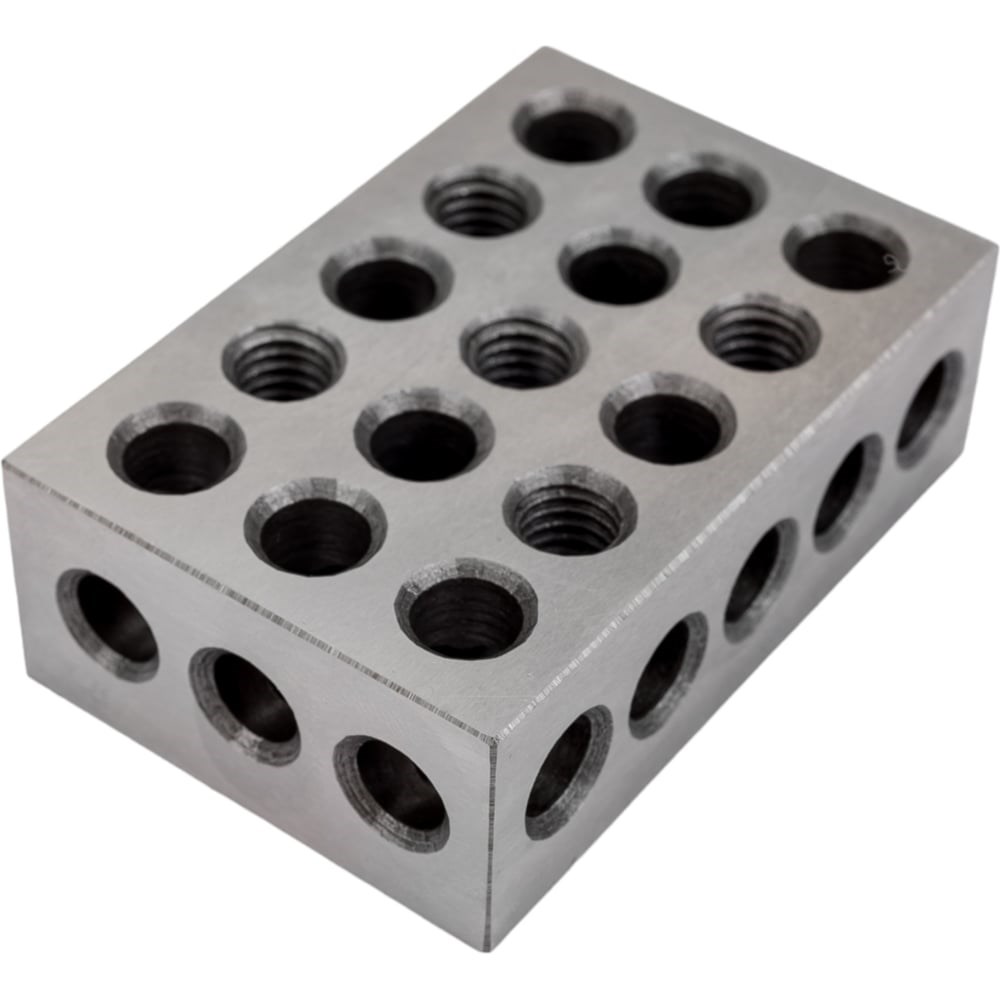 Комплект установочных пластин предназначен для установки деталей и заготовок плоской формы на металлообрабатывающих станках. Применяется как вспомогательное оборудование для работ при поверке, разметке, обработке деталей и заготовок плоской формы. Поставляется в комплекте из 2-х штук. Установочные пластины изготавливаются из стальных заготовок с последующей обработкой и доводкой. 18 технологических отверстий диаметром 9 мм и 5 технологических отверстий с внутренней резьбой 3/8 UNC 16 ниток на дюйм Расстояние между центрами отверстий 14 мм Отклонения от параллельности и перпендикулярности боковых граней относительно основания не превышает ± 0.0002" Точность достигается путем современных методов закалки и обработки металла Технологические отверстия d-9 мм и резьбовые отверстия с внутренней резьбой 3/8 UNC не несут на себе функций пластины Твердость пластин HRC 52-58