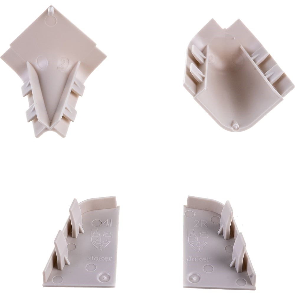 Комплект заглушек к плинтусу для столешниц ООО ДЕКОПЛИНТ ДЖОКЕР 3 - 02 слоновая кость 1070 включает в себя угол наружный, угол внутренний, торцевые заглушки. Данные соединительные элементы позволяют осуществить сборку изделия в момент монтажа, учитывая конфигурацию кухни.