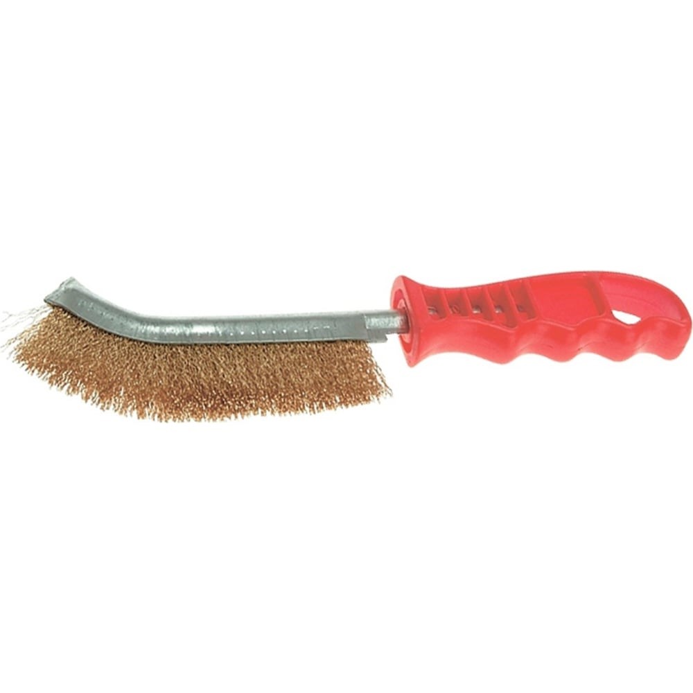Предназначена для грубой зачистки металлических поверхностей в щадящем режиме. Имеет стальную щетину с латунированным покрытием, металлический корпус, пластмассовая рукоятка.