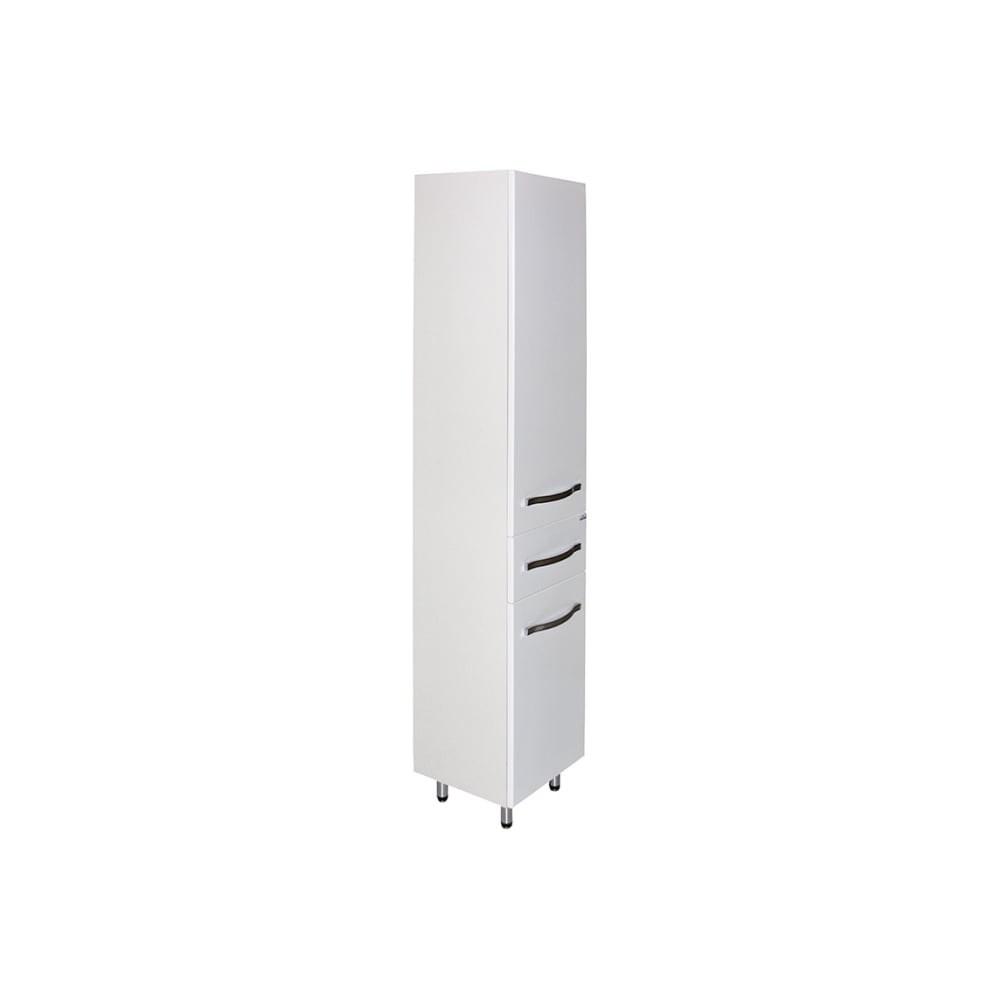 Ослепительно белый цвет, строгие грани фасадов, холодный блеск ручек делают этот комплект похожим на драгоценный камень. Этот мебельный ансамбль украсит любую ванную комнату.