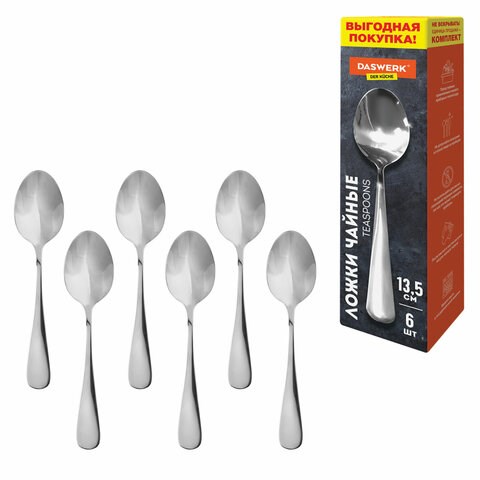 Ложки чайные 13,5 см, STANDARD, КОМПЛЕКТ 6 шт., полированная нержавеющая сталь, серебристые DASWERK (ДАСВЕРК), 609075