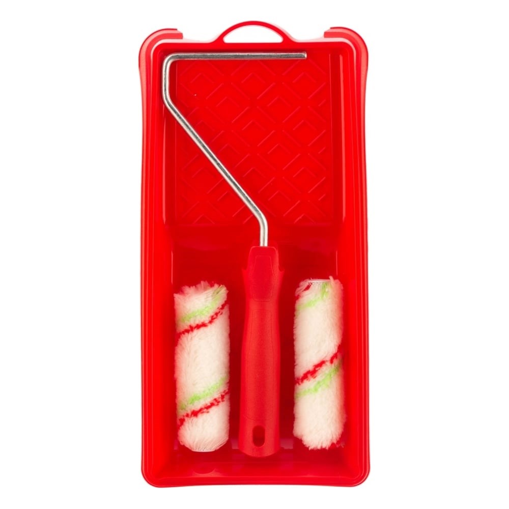 Малярный набор для работ с эмалями СИБРТЕХ кювета 150 мм х 290 мм и мини-валик 110 мм 80453 состоит из двух сменных мини-валиков 110 мм, кюветы 150 мм х 290 мм и бюгеля. Валики подходят для нанесения эмалей и других ЛКМ с агрессивными веществами в составе. Шубка из полиамида и полиакрила хорошо удерживает форму, имеет повышенную износостойкость, высокий коэффициент впитываемости и отдачи краски, а ее волокна не остаются на поверхности, что гарантирует высокое качество окрашивания.