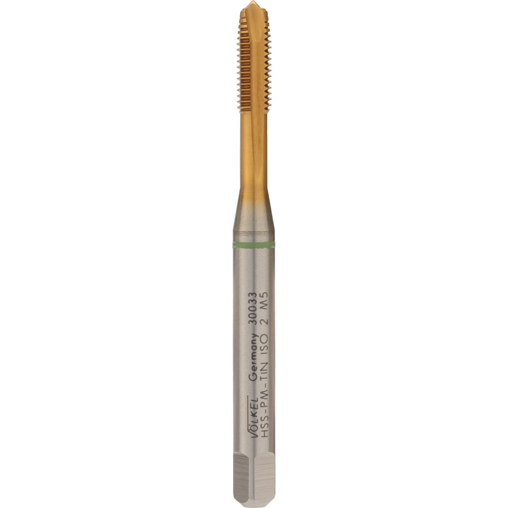 Машинный метчик VOELKEL М 5, шаг 0,8, HSSE-PM TiN DIN371 V30033предназначен для создания внутренней резьбы в различных материалах. Изготовлен из высококачественной быстрорежущей порошковой стали HSSE-PM (S590) с твердостью 65-67 HRC, что гарантирует прочность и износостойкость.Метод порошковой металлургии заключается в переработке металлической пудры высшей чистоты в гомогенные и свободные от сегрегации быстрорежущие стали с превосходными изотропными свойствами при помощи диффузионного процесса, происходящего при повышенном давлении и температуре. В состав стали входит: Co 8.4% (Кобальт), W 6.3% (Вольфрам), Mo 5% (Молибден).Покрытие TiN (нитрид титана) cнижает энергоемкость, повышает надежность инструмента.Инструмент подходит для обработки заготовок, выполненных из легированной или нержавеющей стали, чугуна, алюминия, меди, бронзы, цинка, с пределом прочности до 1000MPa. Резьба нарезается за один этап, машинным или ручным способом.