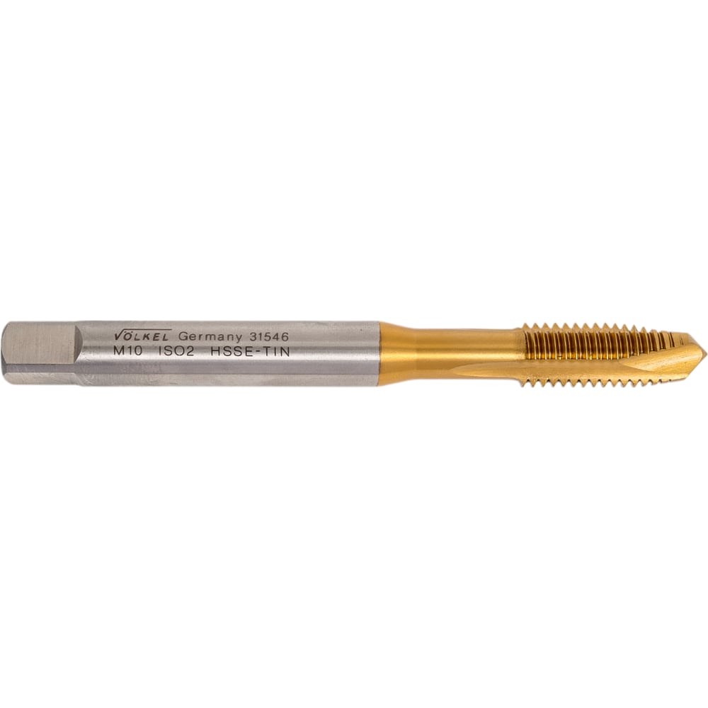 Машинный метчик VOELKEL М10 шаг 1,5 мм HSSE-TiN DIN371 V31546 предназначен для создания внутренней резьбы в различных материалах. Изготовлен из высококачественной быстрорежущей стали HSSE, которая гарантирует прочность и износостойкость. Покрытие TiN (нитрид титана) снижает энергоемкость, повышает надежность инструмента, снижает трение и уменьшает возможность возникновения вибрации. Высокие антифрикционные свойства и устойчивость к износу являются результатом пониженной шероховатости поверхности и повышенной твердости. Подходит для обработки заготовок, выполненных из легированной или нержавеющей стали, чугуна, алюминия, меди, бронзы, цинка, с пределом прочности до 900MPa. Резьба нарезается за один этап, машинным или ручным способом.